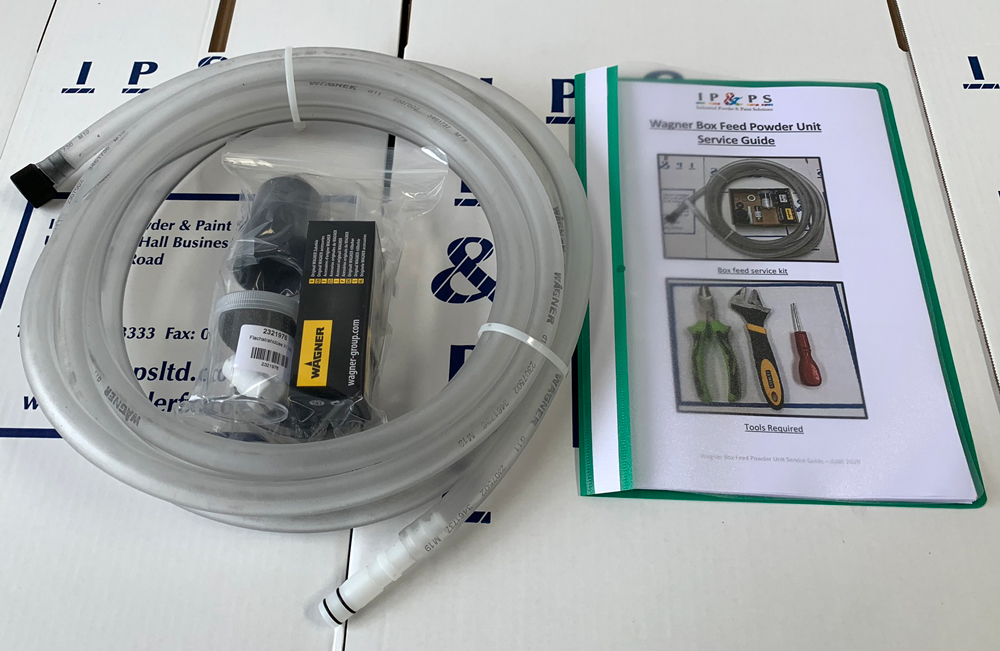 Full-service kit for the Wagner PEM-X1 Box Feed powder gun includes all wearable spare parts for annual service with a step by step instruction manual with easy to follow pictures and instructions.